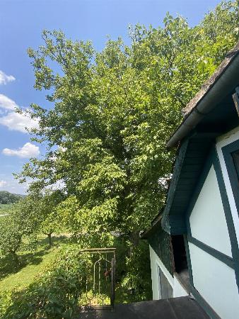 Besonders charmant sind die alten, schattenspendenden Bäume, die dem Grundstück Charakter und Natürlichkeit verleihen.
