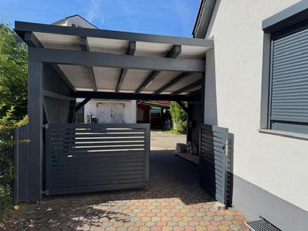 Einfamilienhaus mit großem Garten und Doppelcarport.